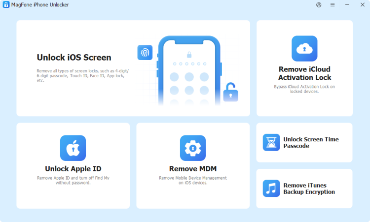 Omdat codering automatisch wordt ingeschakeld wanneer een wachtwoord wordt ingesteld, wordt de codering op uw iPhone uitgeschakeld als u het wachtwoord verwijdert. Wanneer u uw gecodeerde back-upwachtwoord vergeet, kunt u dit verwijderen met een professionele iTunes-wachtwoorddecryptor: MagFone iPhone Unlocker. Het verwijderen van een gecodeerd back-upwachtwoord met MagFone iPhone Unlocker is een eenvoudig proces, waardoor u de codering op uw iPhone kunt uitschakelen en toegang krijgt tot uw iPhone-back-up. Volg de onderstaande stappen om iPhone-codering zonder wachtwoord uit te schakelen.