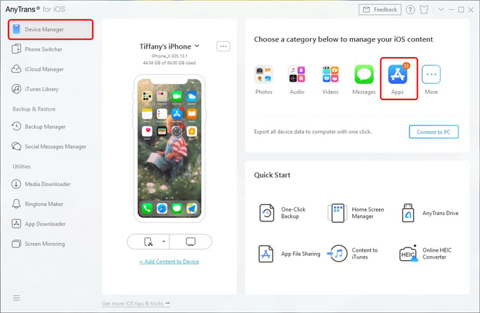 Als u apps slim wilt updaten, is AnyTrans voor iOS een goede keuze om uw apps te beheren met georganiseerde categorieën en op een groter computerscherm. Als uitgebreide iPhone-gegevensbeheerder biedt AnyTrans voor iOS u meer mogelijkheden bij het beheren en overbrengen van uw iOS-apparaten. Voor apps kan het apps downloaden, bijwerken, verwijderen of apps en app-gegevens verplaatsen naar een nieuwe iPhone (iPhone 11 ondersteund).