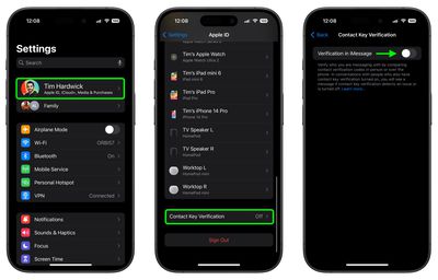 - Zet de schakelaar naastVerificatie in iMessageom contactsleutelverificatie te activeren.