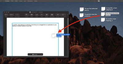 Om een tekstknipsel te maken, markeert u eenvoudig een stuk tekst en sleept u het met uw muis naar uw bureaublad of een geopend Finder-venster.
