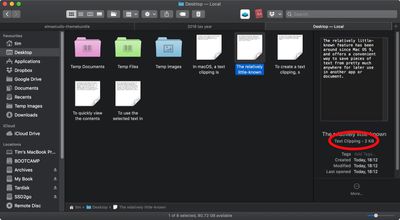 Om snel de inhoud van een tekstknipsel te bekijken, selecteert u eenvoudigweg het bestand en roept u Snelle weergave op met een tik op de spatiebalk.