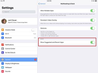 Naast de 11 tot 15 apps die u aan het dock kunt toevoegen, zijn er drie app-slots gereserveerd voor uw onlangs gebruikte apps, apps die verschijnen vanwege de Handoff-functionaliteit en apps die worden voorgesteld op basis van uw app-gebruiksgewoonten. Recent gebruikte apps en voorgestelde apps kunnen worden uitgeschakeld. Zo gaat het: