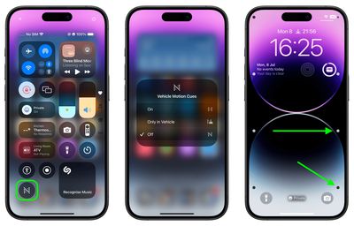 Met Vehicle Motion Cues vertegenwoordigen geanimeerde stippen aan de randen van het scherm veranderingen in de voertuigbeweging om zintuiglijke conflicten te helpen verminderen zonder de hoofdinhoud te verstoren. Met behulp van sensoren die in de iPhone en iPad zijn ingebouwd, herkent Vehicle Motion Cues wanneer een gebruiker zich in een bewegend voertuig bevindt en reageert hierop. De functie kan zo worden ingesteld dat deze automatisch op de iPhone wordt weergegeven, of kan worden in- en uitgeschakeld in het Control Center.