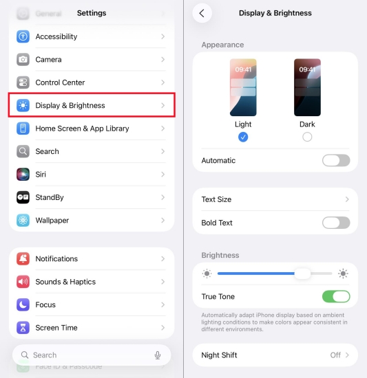 Stap 1.Ga naarInstellingen>Weergave en helderheid.