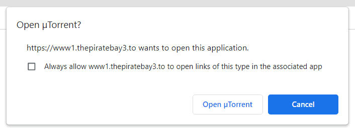 - De uTorrent-applicatie wordt automatisch geopend en u wordt gevraagd de download te accepteren. Klik op “Open uTorrent.”