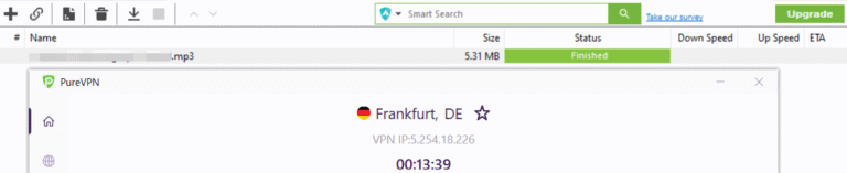 PureVPN Torrenting-snelheidstestresultaten (het eindresultaat)