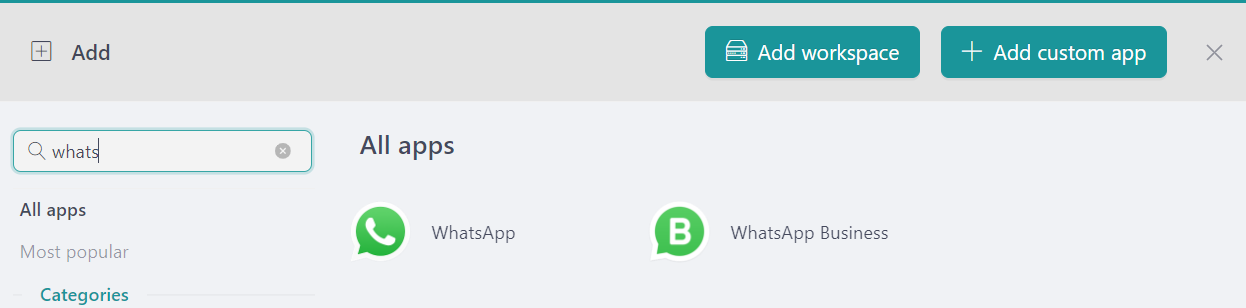 - Klik op"+Toevoegen", en dat is alles!De app is toegevoegd aan de werkruimte van uw Rambox!