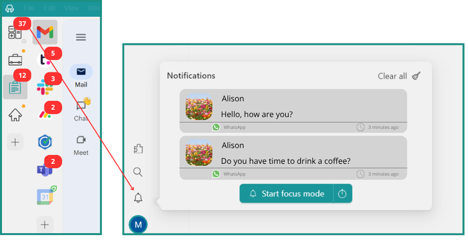 Met Rambox heb je datvolledige controle over meldingen, zodat u kunt aanpassen hoe en wanneer u waarschuwingen ontvangt. Of je nu de voorkeur geeft aan hoorbare meldingen, geen geluid of ze helemaal uitschakelt, Rambox zorgt ervoor dat je gefocust blijft op belangrijke taken en tegelijkertijd afleidingen tot een minimum beperkt.
