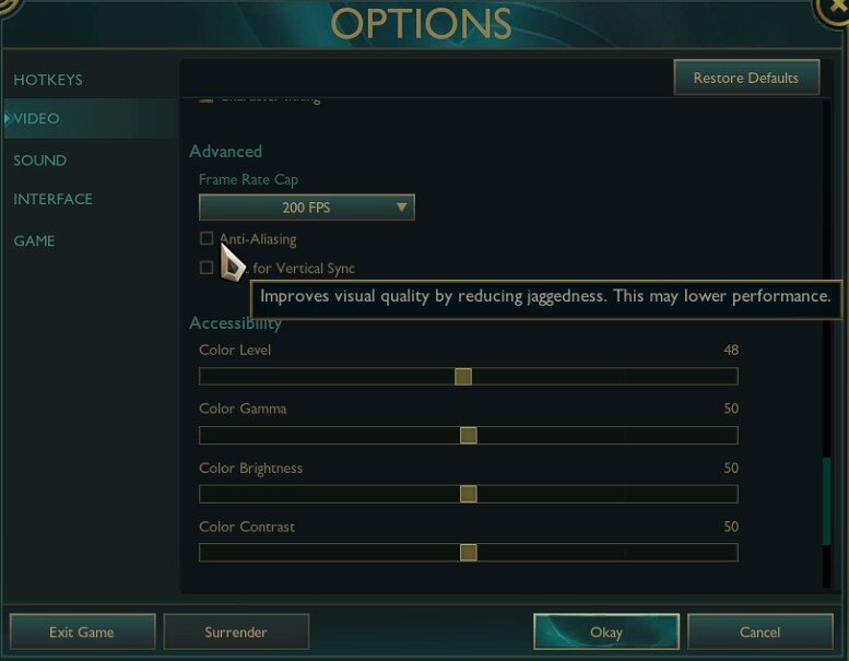 Wijzig de FPS-limiet en schakel anti-aliasing uit voor League of Legends