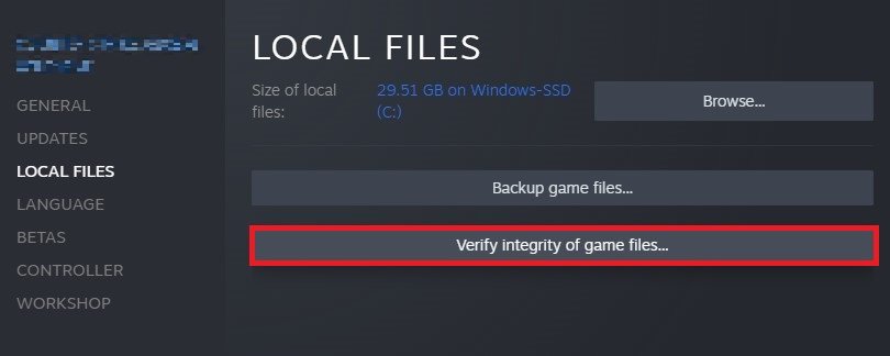 Als je de voorkeur geeft aan de Steam-versie, klik dan met de rechtermuisknop op het spel in je bibliotheek en selecteerEigenschappen. Selecteer in het nieuwe vensterControleer de integriteit van gamebestandenin deLokale bestandentabblad. Het duurt een minuut om ontbrekende of beschadigde spelbestanden opnieuw te downloaden en te vervangen.