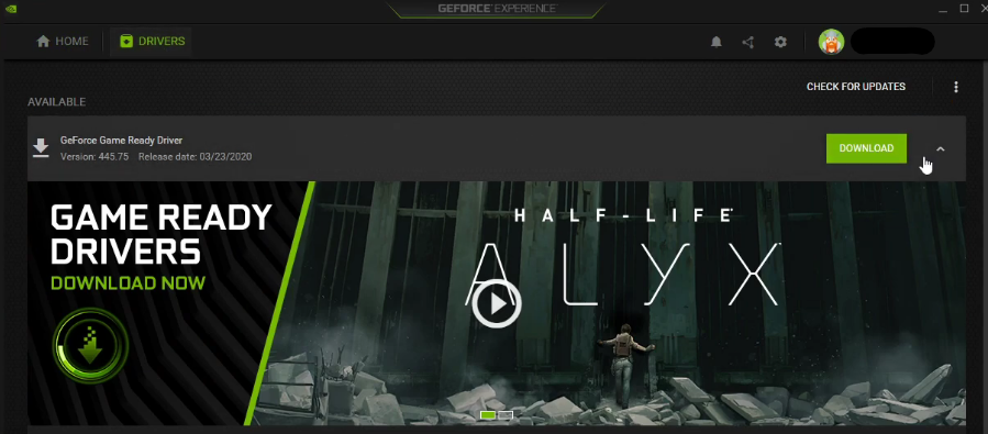 GeForce Experience > Stuurprogramma's > Downloaden