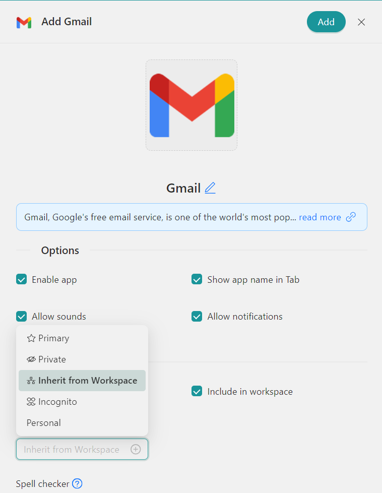 - Klik op"+Toevoegen", en dat is alles!De app is toegevoegd aan de werkruimte van uw Rambox!