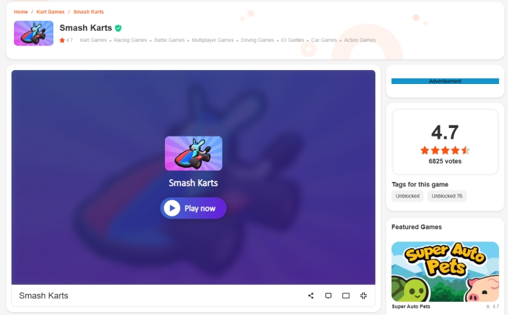 Smash Karts is meer dan alleen een online kartracespel: het is een dynamische, actievolle multiplayer-ervaring waarin spelers het tegen elkaar opnemen in explosieve kartgevechten. Wil je zonder beperkingen duiken in de snelle, actievolle wereld van Smash Karts? Of je nu op school, op het werk bent of gewoon op zoek bent naar ononderbroken plezier, deze uitgebreide gids helpt je toegang te krijgenSmash Karts gedeblokkeerdnaadloos.