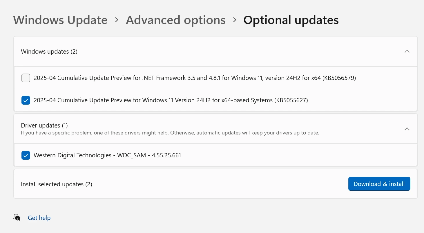 7. Selecteer alle hier weergegeven updates en klik op de knop Downloaden en installeren.