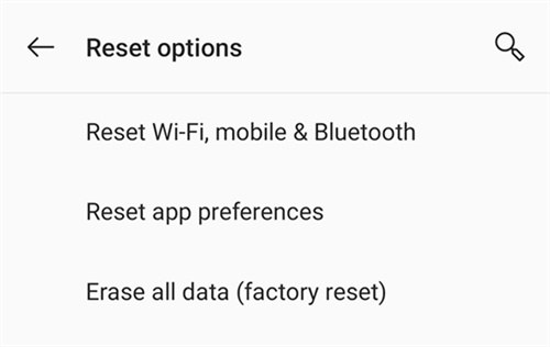 Als het opnieuw opstarten of repareren van de volumeknoppen niet heeft geholpen, wilt u wellicht uw telefoon terugzetten naar de fabrieksinstellingen om de veilige modus te verlaten. Wees voorzichtig bij het gebruik van deze optie, omdat hierdoor al uw gegevens en instellingen worden verwijderd.