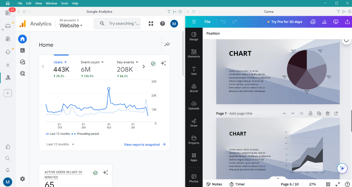 Met Tiles kunt u uw scherm splitsen en bepalen hoe uw apps verschijnen:horizontaal, verticaal of in een aangepaste lay-outdie bij uw workflow past. Wilt u gegevens controleren in Google Analytics terwijl u een rapport maakt in Canva? Geen probleem. Je kunt beide tegelijk bekijken zonder heen en weer te schakelen.
