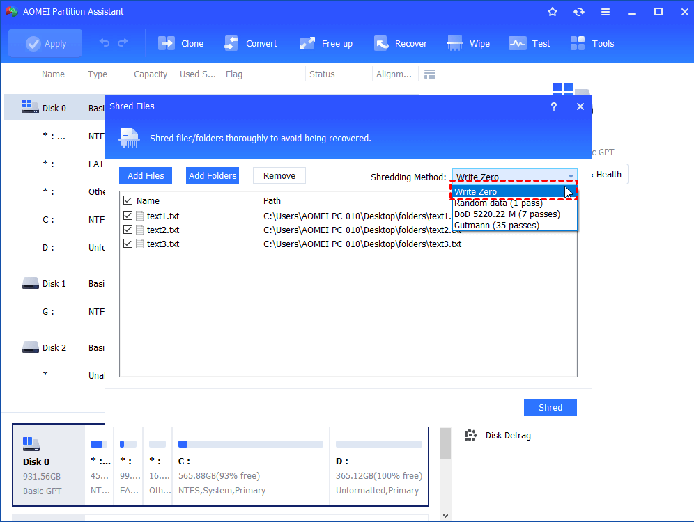 Stap 3.Kiezen "Schrijf nul” als de versnippermethode.