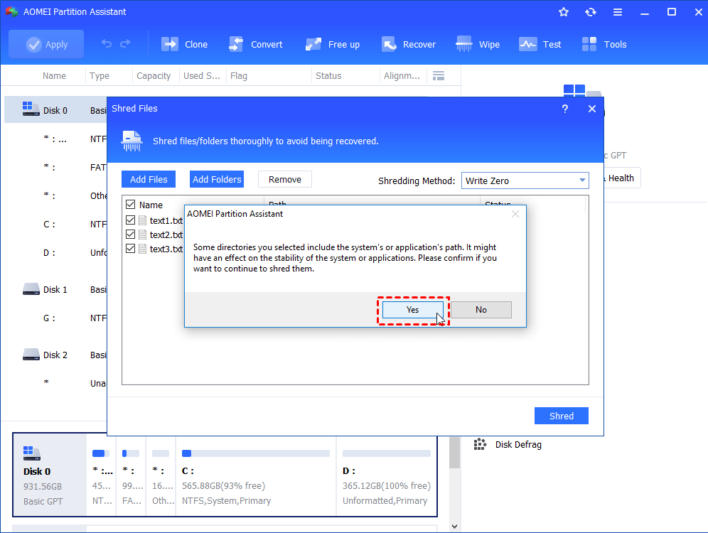 Stap 4.Klik op de “Versnipperen' om te beginnen en klik op 'Ja“.