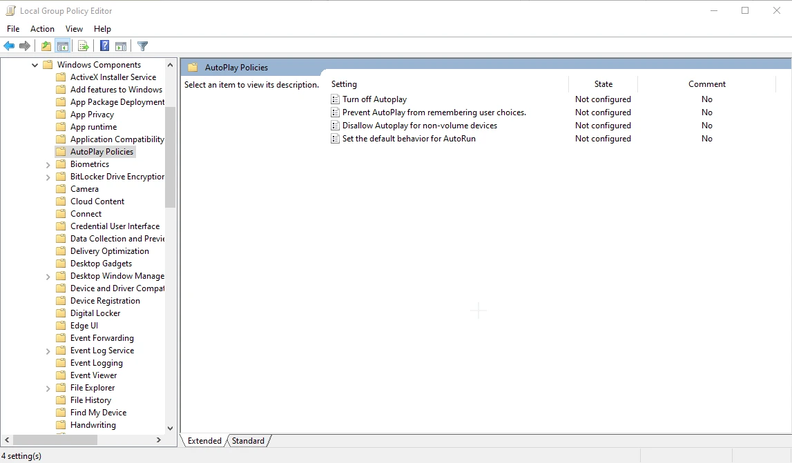 - Navigeer naarComputerconfiguratie > Beheersjablonen > Windows-componenten > AutoPlay-beleid.