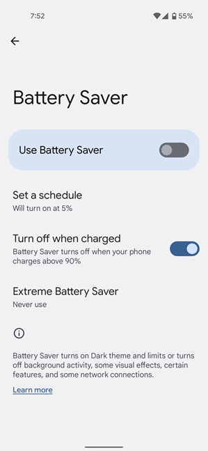 Wanneer het batterijniveau op uw Android een bepaald niveau bereikt, wordt de energiebesparende modus op uw apparaat geactiveerd. Deze modus beperkt automatisch de functionaliteit van uw apparaat door achtergrondapps en andere functies, waaronder schermspiegeling, uit te schakelen.