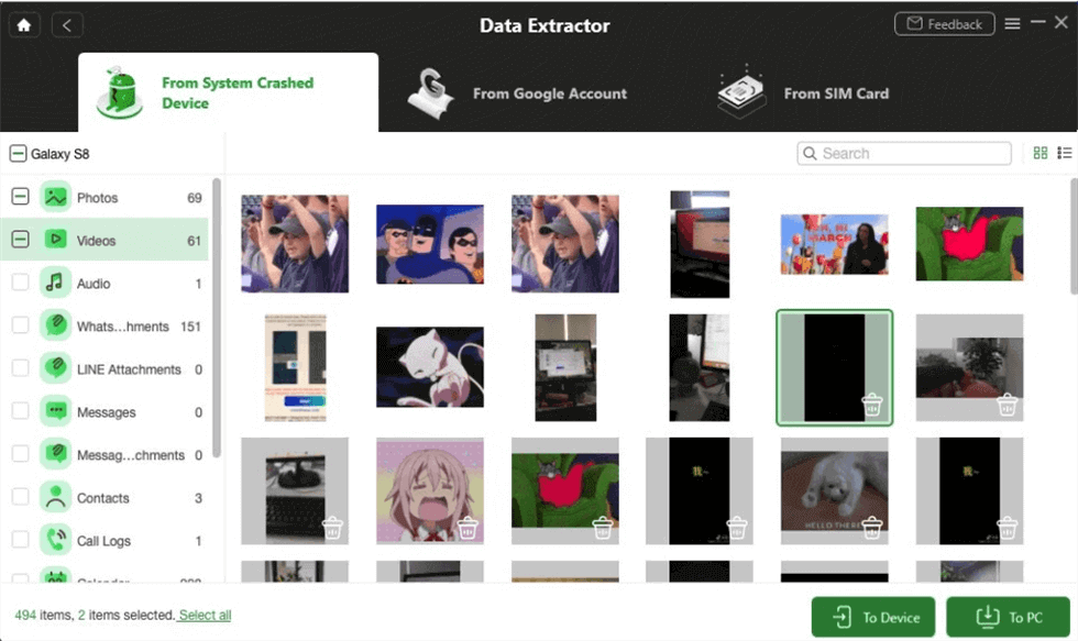 Het mooiste is dat DroidKit APK's en WhatsApp-gesprekken, foto's, films, muziekopnamen, e-mails, ZIP-bestanden, eBooks, telefoongegevens, contactgegevens, agenda-evenementen en zelfs Line-gesprekken op meer dan 20.000 Android-apparaten kan ophalen.