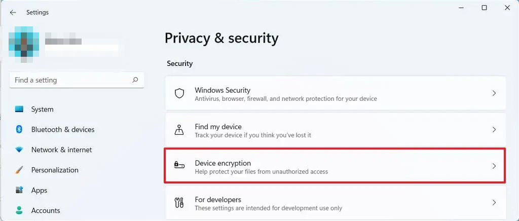 Geval 1. Windows 11 Home Device Encryptie ontbreekt in Instellingen