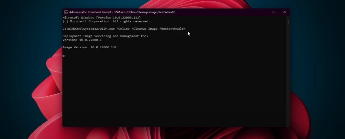 Ga naar uw startmenu-zoekopdracht en typOpdrachtprompt. SelecteerUitvoeren als beheerder. Uw opdrachtprompt wordt geopend. Voer hier het commando inDISM.exe /Online /Opruimimage /Restorehealthen druk op Enter. Deze handeling zal enige tijd duren, afhankelijk van uw systeemconfiguratie. Zodra het proces is voltooid, is uw probleem opgelost. Als deze methode ook niet voor u werkt, ga dan verder met deze laatste methode.