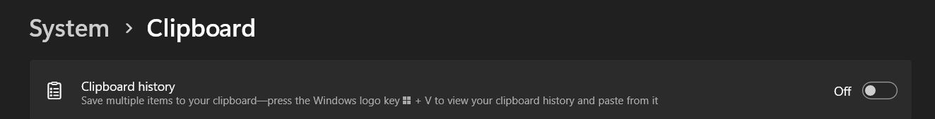 De schermafbeelding die u maakt, of de regio die u op het scherm selecteert om vast te leggen, wordt rechtstreeks op het klembord op uw pc geplakt. Als om welke reden dan ook de klembordgeschiedenis op uw pc is uitgeschakeld, worden de schermafbeeldingen niet opgeslagen en gaat het doel van Win+Shift+S verloren. Zorg ervoor dat u het inschakelt met behulp van de onderstaande stappen: