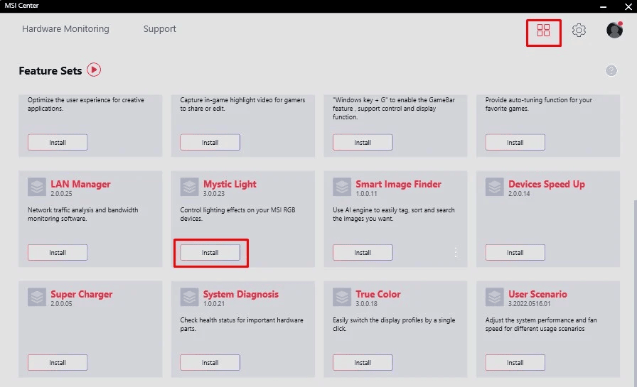 Nie można używać funkcji, jeśli nie jest ona zainstalowana. To samo dotyczy Mystic Light. Oto jak zainstalować go w MSI Center.