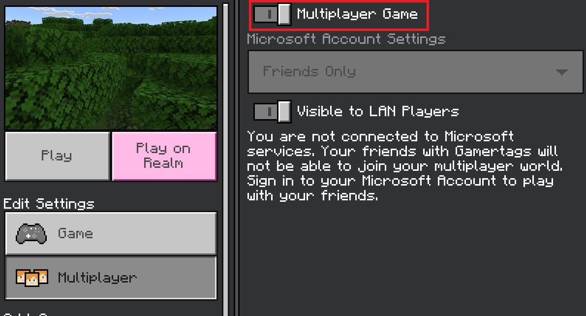 Włącz opcję „Gra wieloosobowa” w ustawieniach Minecrafta