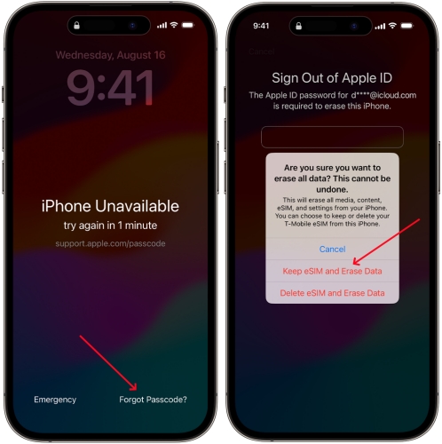 Krok 1.Wprowadź swoje hasło, aż pojawi się ekran iPhone niedostępny.