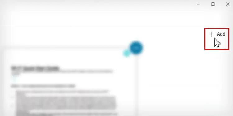 - Następnie kliknijDodaćw prawym górnym rogu okna HP Smart.