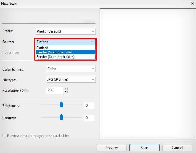 - WybieraćPodajnikjeśli używasz ADF iPlatformajeśli do skanowania dokumentów używasz skanera płaskiego. UstawDPIDo300dla optymalnej rozdzielczości skanowania.