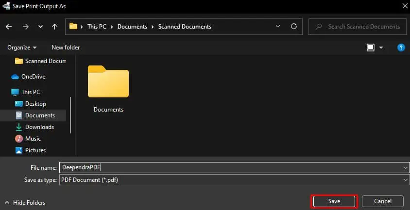 - Jeśli nie znajdziesz swoich dokumentów wZeskanowane dokumentyfolderze, kliknijZapisz jakoaby poznać lokalizację zapisu zeskanowanych plików.