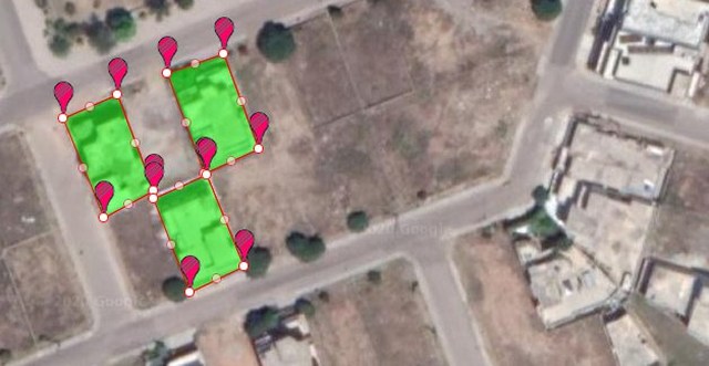 Agora clique com o botão esquerdo em um canto do terreno para soltar um alfinete e continue soltando alfinetes para criar um limite. O mapa preencherá automaticamente a área com cores para facilitar a distinção da área selecionada. A linha e a cor de preenchimento, ambas podem ser alteradas se necessário.