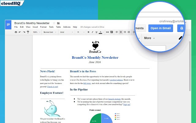 Pessoalmente, não gosto do editor de e-mail do Gmail para digitar e-mails longos. Se você sente o mesmo, esta extensão é para você. Basta criar seu e-mail em um documento do Google Docs e aproveitar todas as ferramentas de formatação. Em seguida, clique no botão “Abrir no Gmail” e o documento será convertido em rascunho do Gmail com toda a formatação e imagens intactas.