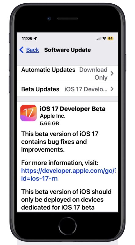 Atualmente, iOS 17 beta 1 e iPadOS 17 beta 1 estão disponíveis para download desta forma.