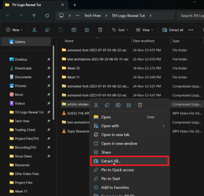 Em um PC com Windows: clique com o botão direito no arquivo .zip baixado e escolha ‘Extrair tudo’ para descompactá-lo.