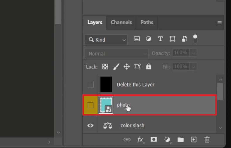 Oculte a camada de espaço reservado clicando no ícone de olho próximo a ela.