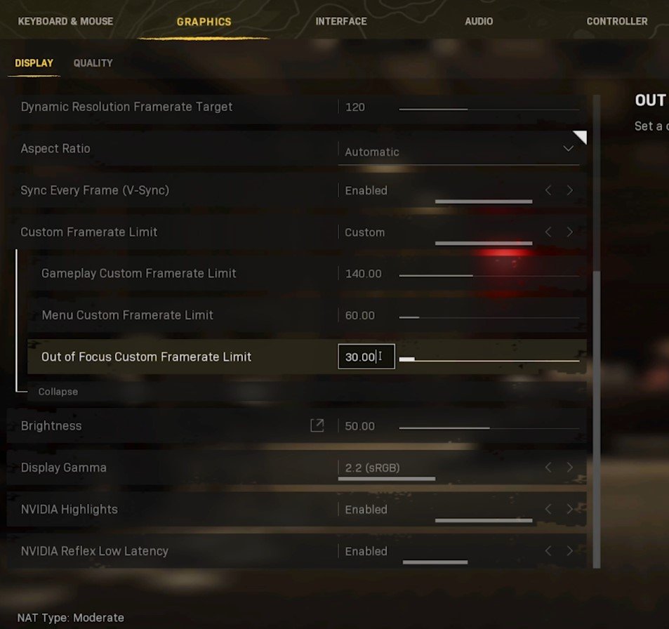 A opção de brilho não afetará seu desempenho, portanto defina esta opção de acordo com sua preferência. Ao usar uma placa gráfica NVIDIA, e estas últimas opções estiverem disponíveis, habilite seuDestaques da NVIDIAeNVIDIA Reflex Baixa Latênciaconfigurações.