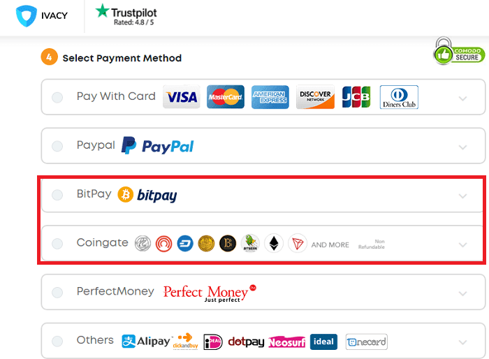 Antes de efetuar seu pagamento, verifique se o provedor VPN de sua escolha oferece suporte à carteira de sua preferência.