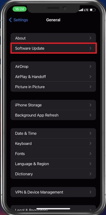 Se nada ajudar você, verifique se está executando a versão mais recente do iOS. Nas configurações principais, toque emEm gerale depoisAtualização de software. Certifique-se de baixar e instalar a atualização mais recente, caso haja alguma disponível.