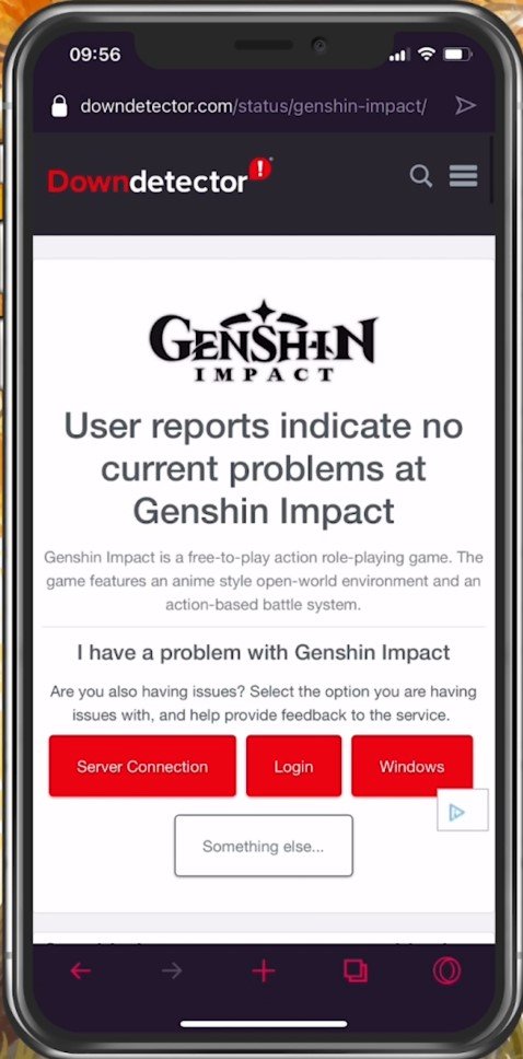 Abra seu navegador favorito e pesquiseStatus do servidor Genshin ImpactouClique aquipara visualizar a página de status do servidor Genshin Impact. Nesta página você pode visualizar os relatórios de interrupção do servidor do jogo nas últimas 24 horas. Abaixo, você pode ver se esses relatórios estão relacionados ao site Genshin Impact ou ao jogo real. Você também deve fazer uso doMapa de interrupções ao vivo. Isso permitirá que você veja de onde vêm esses relatórios.