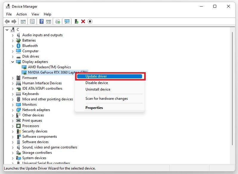Certifique-se de que seu driver gráfico esteja atualizado. Abra o seuGerenciador de dispositivos. Nesta janela, expanda seuAdaptadores de vídeo. Clique com o botão direito em seuPlaca gráficae selecioneAtualizar driver. Certifique-se dePesquise drivers automaticamente.