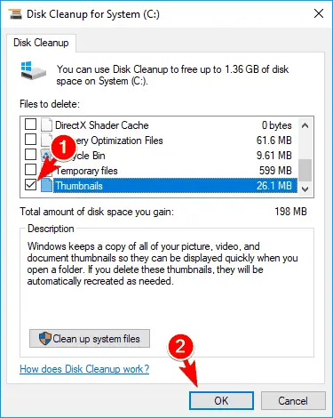 Isso limpará todos os arquivos temporários relacionados às miniaturas. O sistema operacional Windows recriará automaticamente esses arquivos.