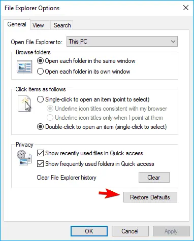 Depois de alternar as configurações de miniaturas, a próxima etapa é restaurar as opções do Windows File Explorer para as configurações padrão. Aqui está o que você precisa fazer:
