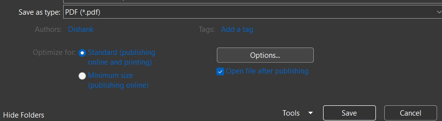 Passo 7 – Após selecionar o PDF, clique em Opções disponíveis no prompt para salvar o arquivo antes de salvar o documento.