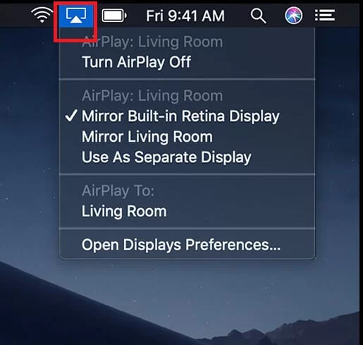 Observação: Se você concluiu o espelhamento do AirPlay, não se esqueça de desligar o AirPlay no seu Mac.