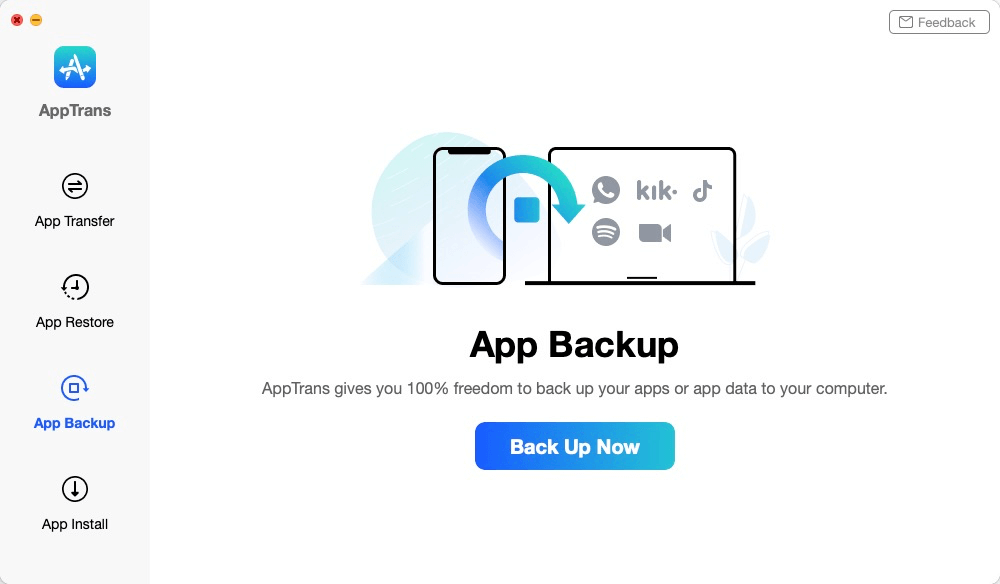 Passo 1. Instale o AppTrans em seu computador e vá para App Backup.