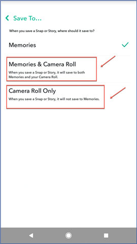 - Também é possível fazer backup de suas capturas de tela do Snapchat dessa forma, embora haja um controle deslizante separado para verificar isso.